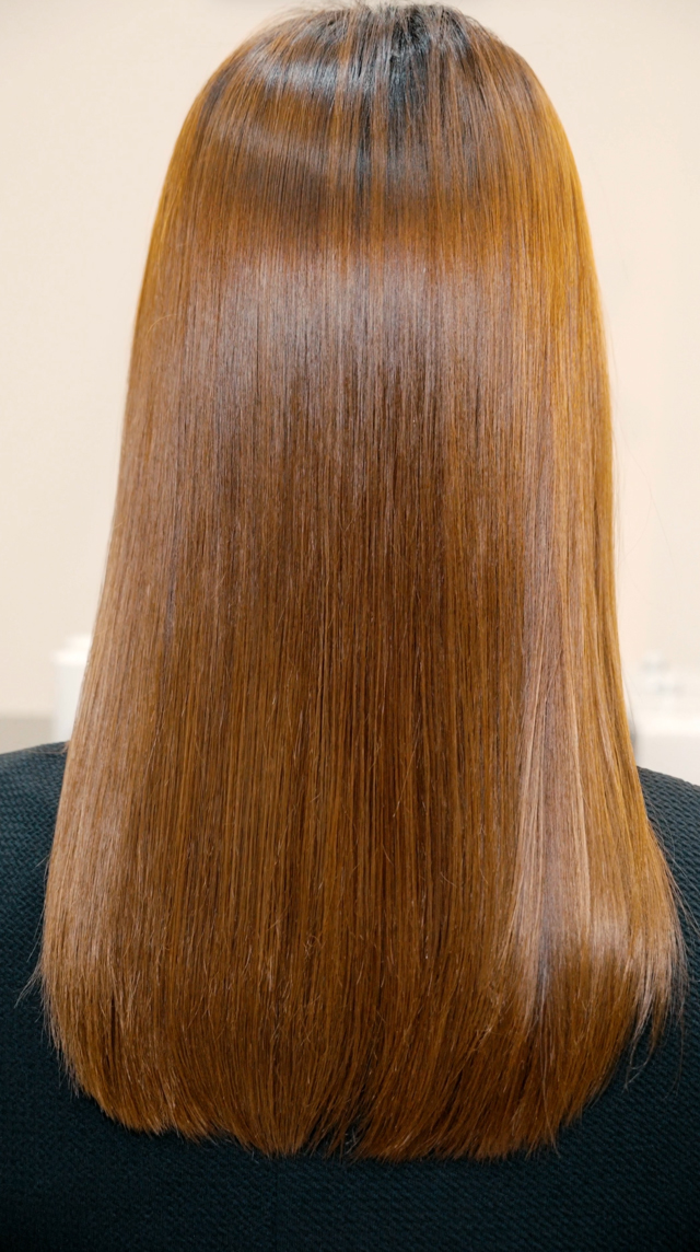 髪にハリ・コシが出て、艶を与える効果が最も高く、ヘアカラーの色持ちが良い仕上がりを目指しています。